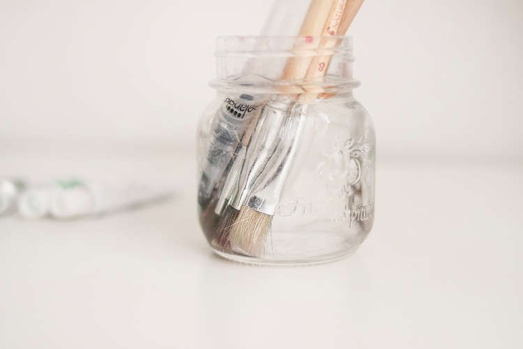 Bleistifte, Kohlepapier, Wassergläser, Washitape oder Kreppband zum Kleben